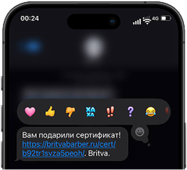 Мы отправим сертификат ссылкой в смс